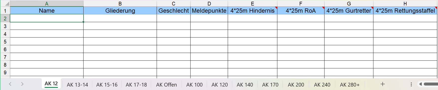 Anmerkung: Wenn Sie nicht alle Altersklassen anbieten (z.B. Senioren), können Sie einfach die nicht benötigten Tabellenblätter löschen.